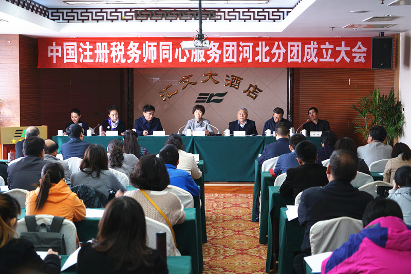 会上,由耿金跃代表河北省税协宣读了关于成立中国注册税务师同心服务团河北分团的决定;由权芳楼为河北分团代表颁发牌匾并发表重要讲话;河北省税协副秘书长孙韶霜宣读《中国注册税务师同心服务团河北分团规程》;河北省政协委员、省税协副会长、同心服务团河北分团副团长、河北金税桥税务师事务所董事长李炯梅代表中国注册税务师同心服务团河北分团宣读了社会公益倡议书。会议最后,由高莉代表河北省税务师行业党委,向河北省同心服务团的成立宣读贺词。