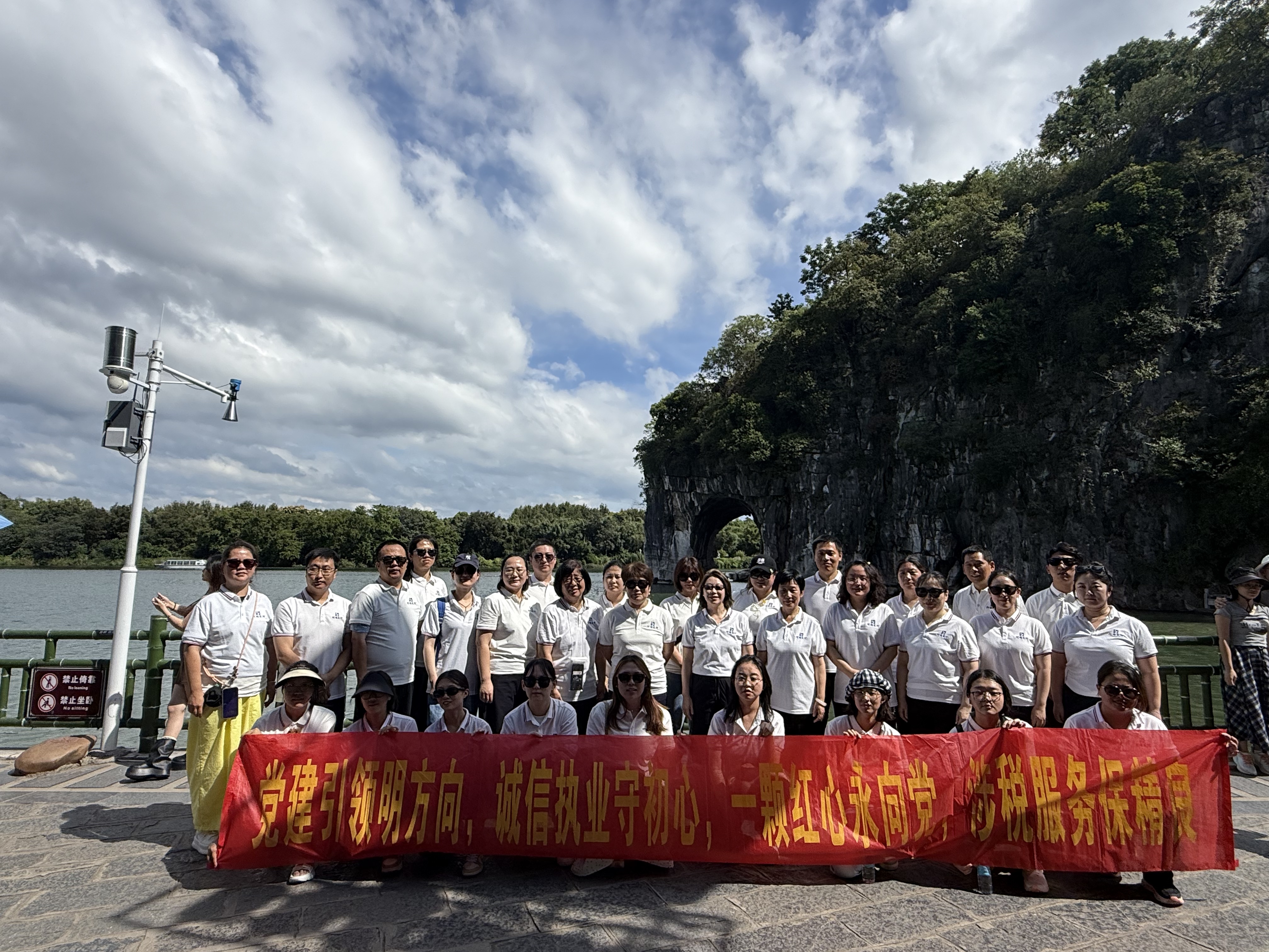此次活动构建“体验 + 感悟 + 实践”学习体系,实现党性与专业能力双提升。攀爬瀑布的奋斗精神,助力团队攻克企业疑难财税案例;桂海晴岚的政策研讨成果,提升了税务合规计划与风险防控服务精准度;象鼻山强化的诚信担当,筑牢了涉税服务专业基石。