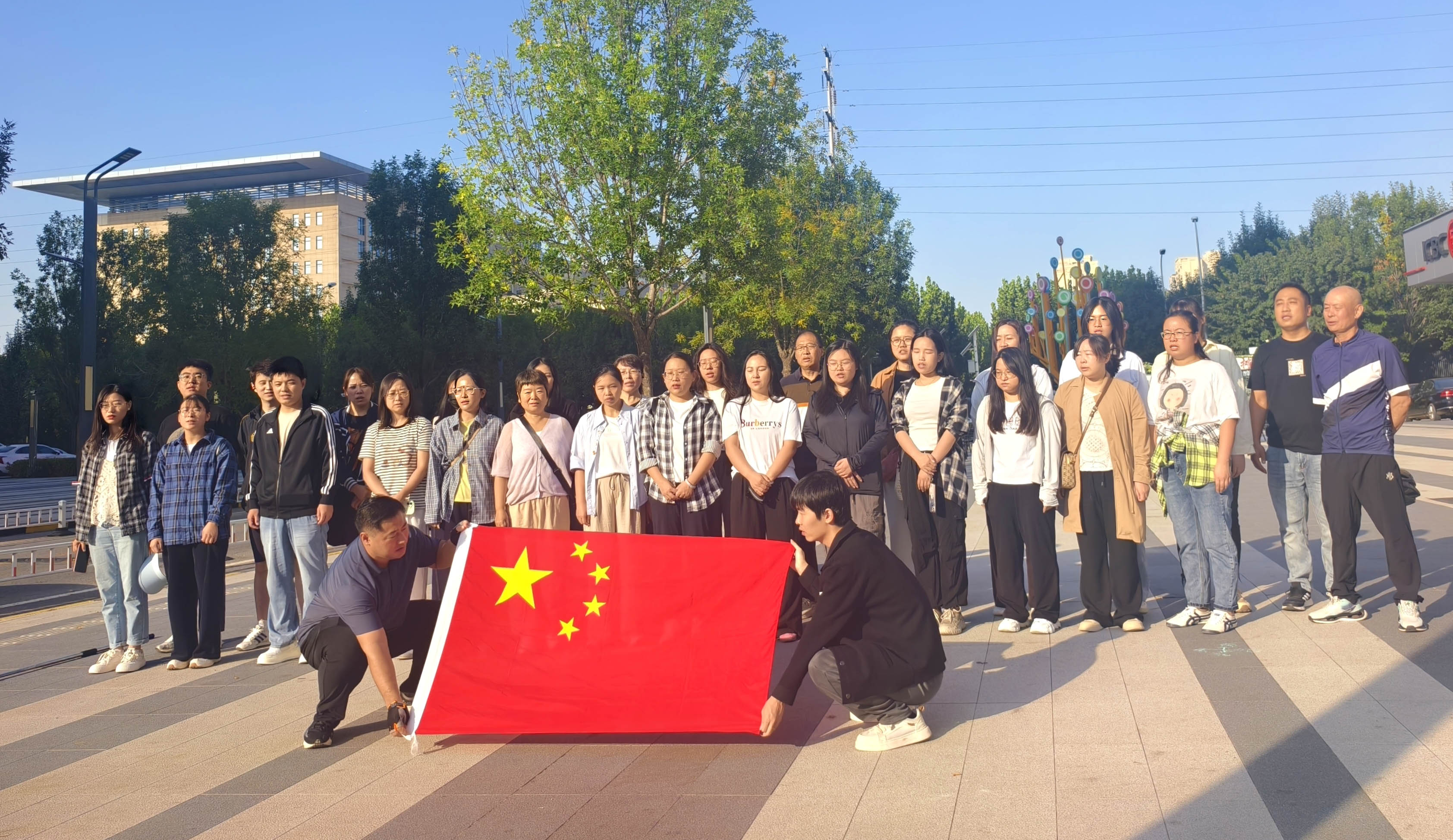 活动当日秋高气爽,阳光正好。公司全体员工齐聚办公楼广场,启动仪式正式开始,奏唱中华人民共和国国歌。随着“有幸生于华夏,祝福祖国繁荣昌盛”的整齐响亮口号后,骑行队伍有序出发。本次骑行路线精心设计,途中经停廊坊市烈士陵园和红色文化景点。