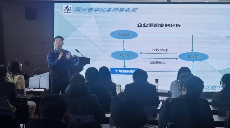2025 年 11 月 27 日下午,中储广场 E 座 的石家庄市律师协会会议室座无虚席,国兴普华税务师事务所(河北)有限公司总经理王京梁博士应石家庄市律师协会财税专业委员会邀请,做了一场主题为《企业并购重组的税务合规计划》的专题讲座,石家庄市律师协会副会长安斌、财税专业委员会主任邓鸿鲲律师及石家庄市各律师事务所的近70名律师参加了培训。