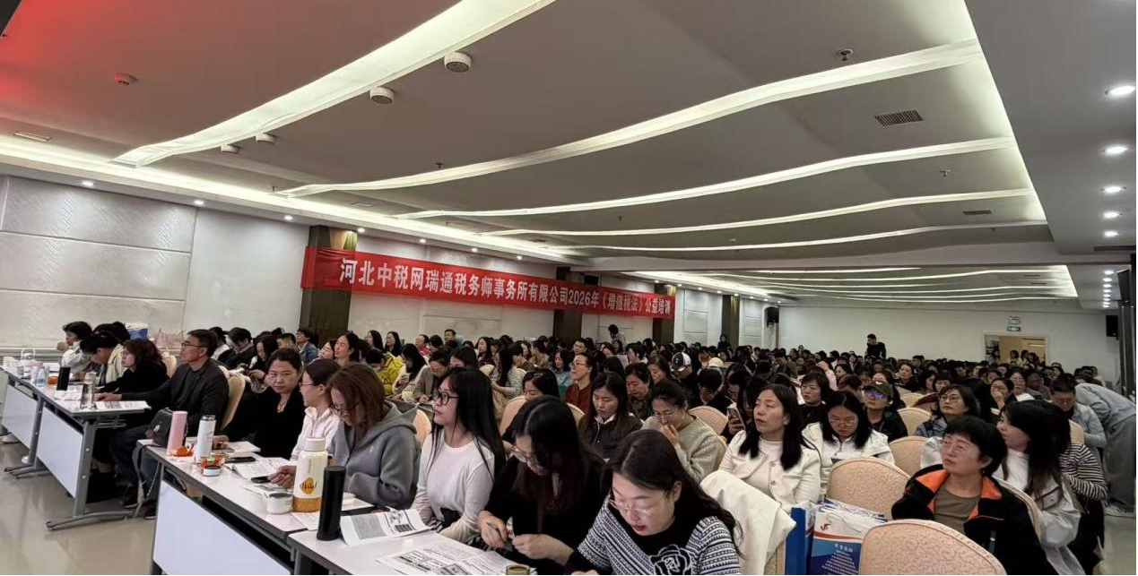 为深入贯彻落实《中华人民共和国增值税法》(2026年1月1日正式施行)新政策要求,助力承德地区各类市场主体准确把握增值税制度法治化、规范化改革核心要点,2026年4月16日,河北中税网瑞通税务师事务所成功举办《增值税法》专题公益培训。培训现场秩序井然、氛围热烈,吸引来自全市各行业财务总监、税务负责人、财税从业人员等 300 余名专业人士参会。